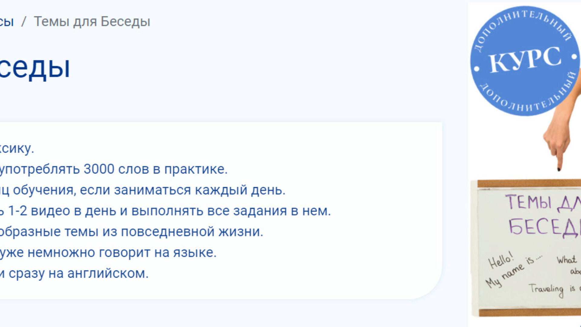 Курс «Темы для беседы» подойдет для тех, кто хочет :
