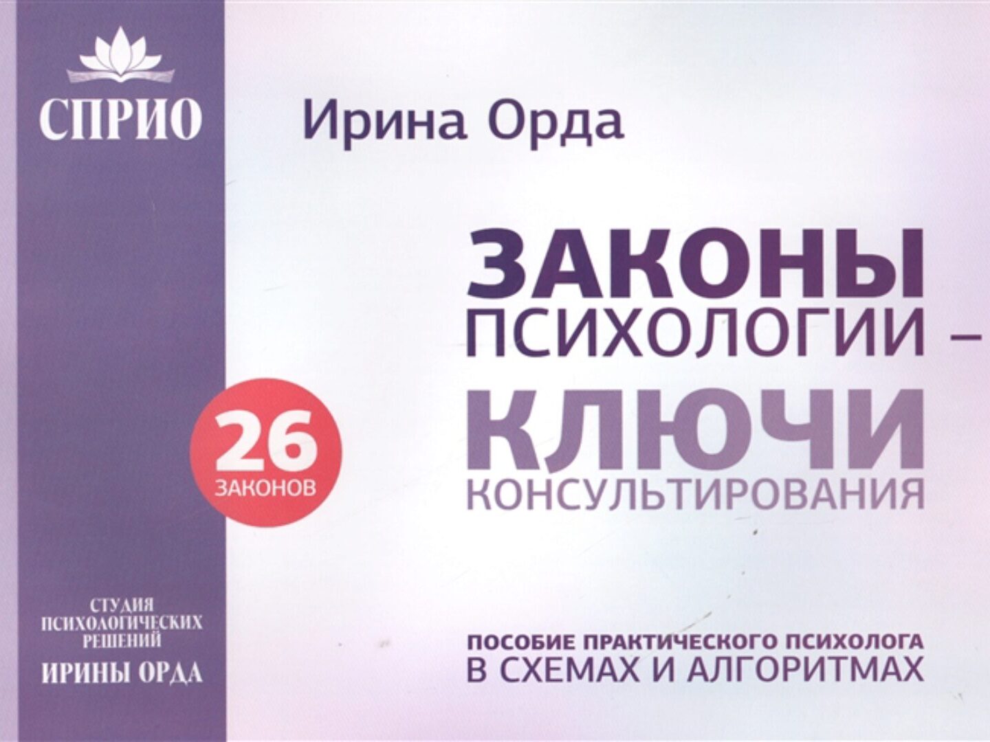 В представленных Законах содержится современное изложение ведической мудрости. Это руководство – уникальная новинка для практических психологов. Законы психологии, это не просто Ключи консультирования, это фундамент жизни. Это главные секреты жизни, созданные давно и ожившие на понятном языке в современных схемах. Представленный в руководстве материал является на 100% отработанным в многолетней практике практического психолога Ирины Орда. Это реализованный опыт, который состоялся более чем в 1000 консультаций с реальными Клиентами. В этих компактных схемах изложены фундаментальные знания о жизни, за которыми стоят определенные законы справедливости. Подобные знания в высших заведениях не дают, потому как в ВУЗах не принято размышлять о Боге, о душе, о судьбе…
