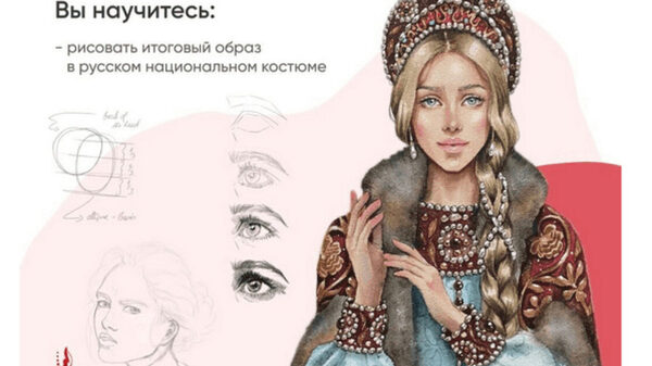 Научитесь рисовать итоговый образ в русском национальном костюме