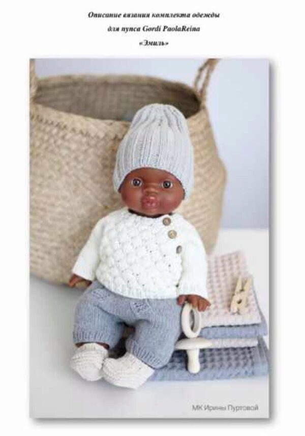 Описание вязания комплекта одежды для пупса Горди Paola Reina. По данному МК вы свяжете кардиган с капюшоном и ползунки. Пряжа Yarn Art Jeans 50g/160m спицы круговые и чулочные 2 и 2,5. Файл в формате pdf.