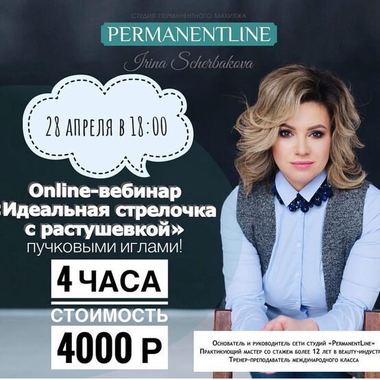 Вебинар от тренера-преподавателя Ирины Щербаковой для практикующих мастеров перманентного макияжа в аппаратной технике.