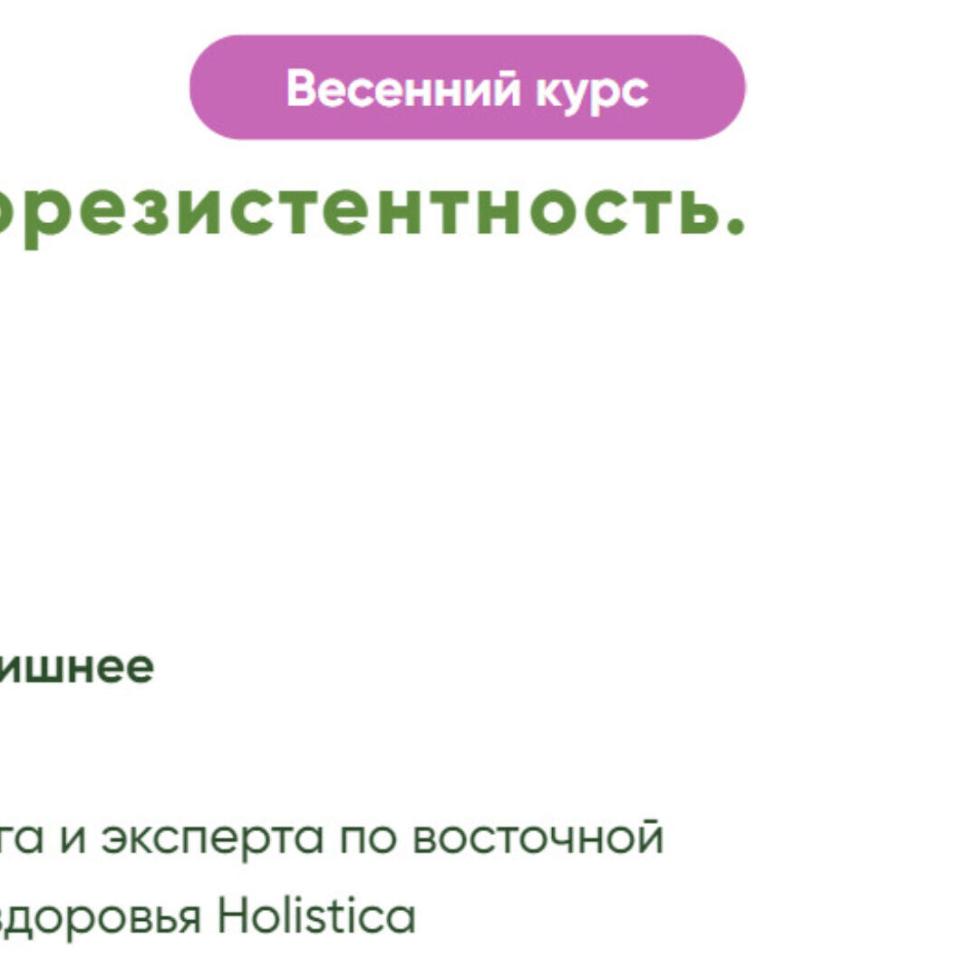 31 марта — 28 апреля 2024 Зарядитесь энергией и решите проблемы с лишним весом, пищеварением и щитовидной железой С возрастом метаболизм замедляются, снижать вес становится сложнее, а гормональные проблемы ухудшают ситуацию ЭТА ПРОГРАММА ДЛЯ ВАС, ЕСЛИ Проблемы с пищеварением постоянное вздутие и
