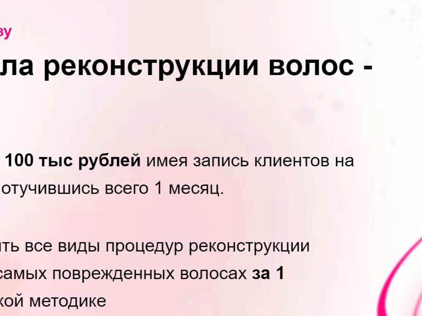 Высшая школа реконструкции волос - Be PPROFI Зарабатывай от 100 тыс рублей имея запись клиентов на 3 месяца вперед отучившись всего 1 месяц. Научись выполнять все виды процедур реконструкции на любых, даже самых поврежденных волосах за 1 месяц по авторской методике - Где брать новых клиентов? - Как
