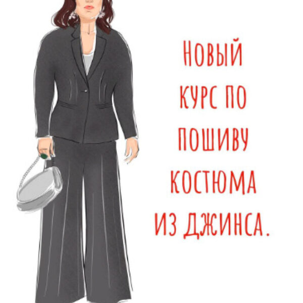 В видеокурсе есть: снятие мерок построение основы моделирование выкройки подготовка ткани технология обработки всех узлов ручные петли Использована джинсовая ткань 100% хлопок. Расход ткани на костюм 3 м (у меня была ширина ткани 1,6 м поэтому получилась ещё сумочка и топ, но об этом в отдельном