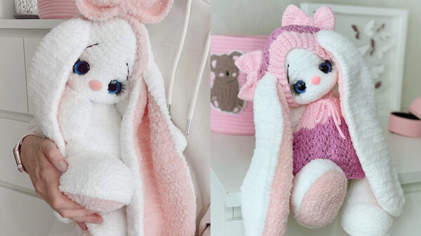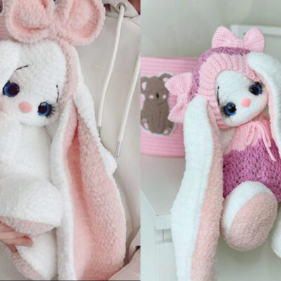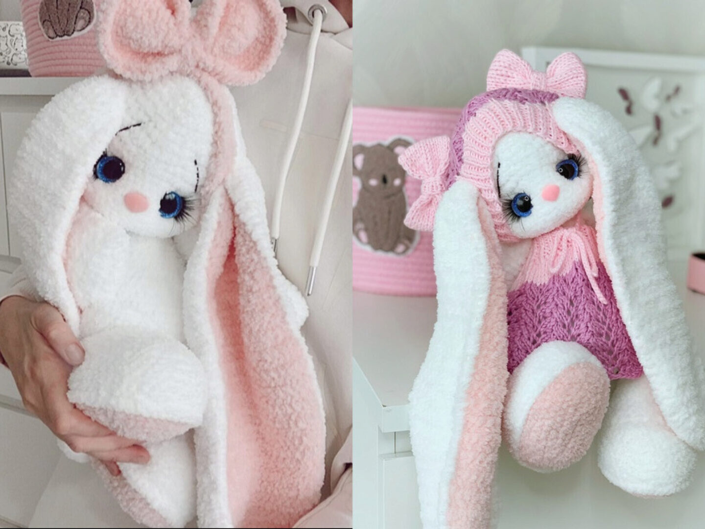 Обновленная версия Зайчик 2.0 сразу с двумя узорами вязания ушек с видео, моими объяснениями и инфо, как я вяжу без подсчетов, схемой и т.д.