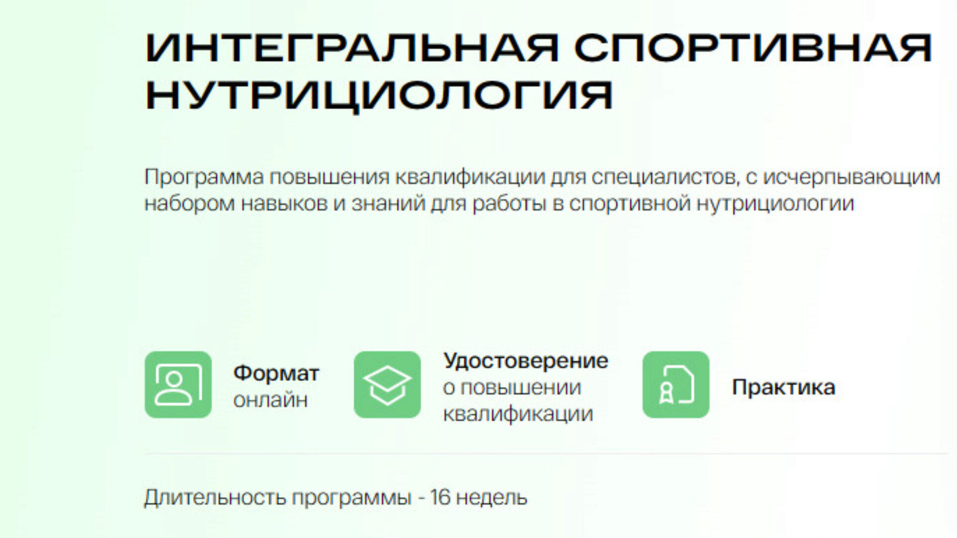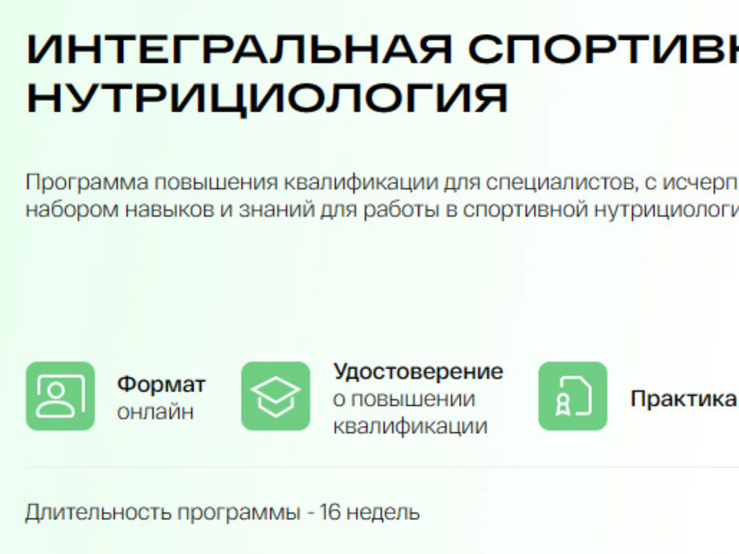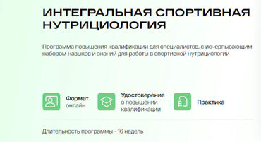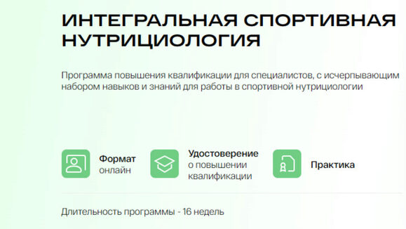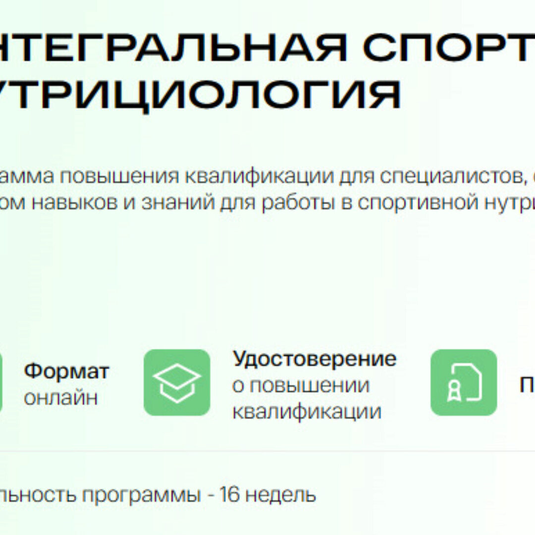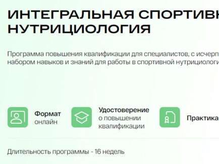 Программа повышения квалификации для специалистов, с исчерпывающим набором навыков и знаний для работы в спортивной нутрициологии