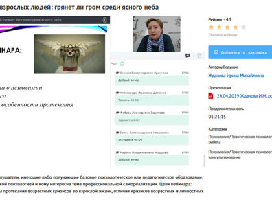 Ирина Жданова Вебинары «Возрастные кризисы взрослых людей» — УИПКиП