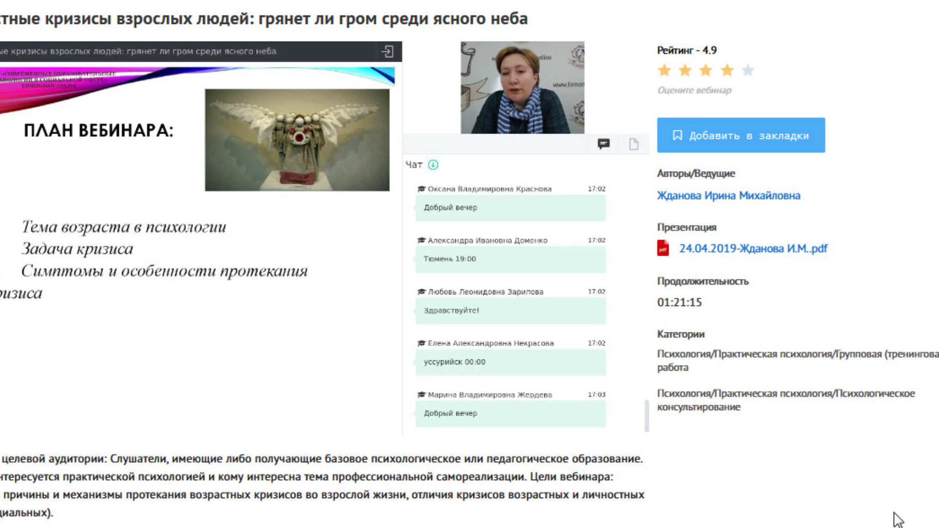 Отзывы о курсе Вебинары «Возрастные кризисы взрослых людей» от Ирины Ждановой