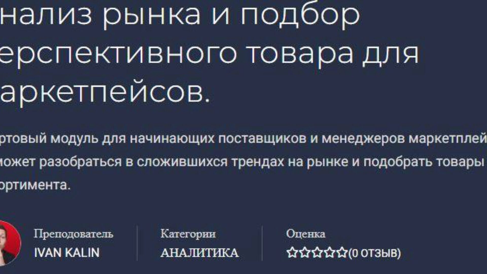 Отзывы о курсе «Анализ рынка и подбор перспективного товара для маркетплейсов» от Ивана Калина