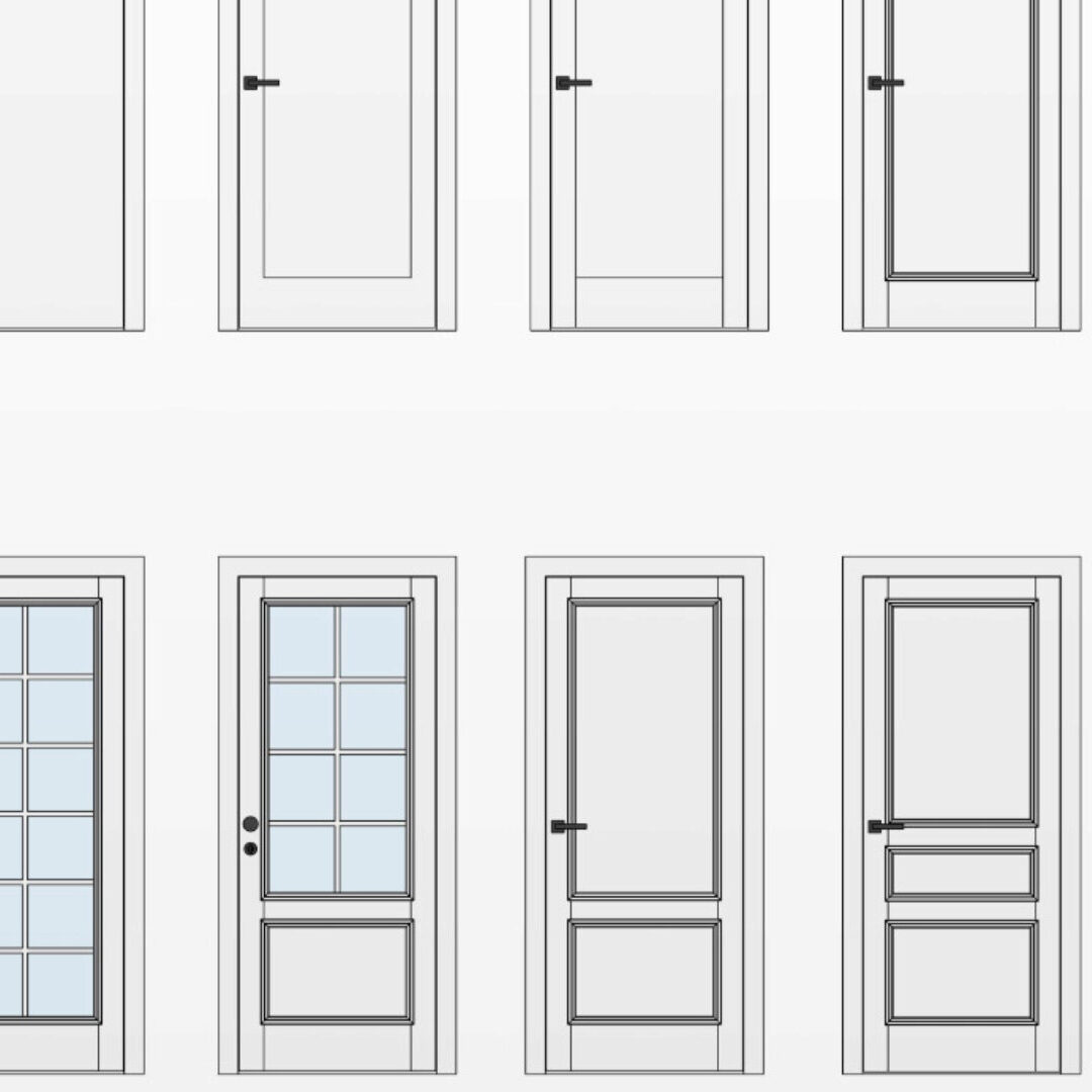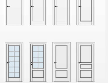 В набор входят следующие семейства: - Проемы - Отверстия - Проемы - Порталы - Двери входные - Двери технические - Двери межкомнатные - Распашные - Скрытые - Раздвижные - Пенал - Купе - Купе-Magic - Книжка - Книжка-Compak - Роторные - Pivot Параметры семейств - Габариты - Настраиваемые типы дверного
