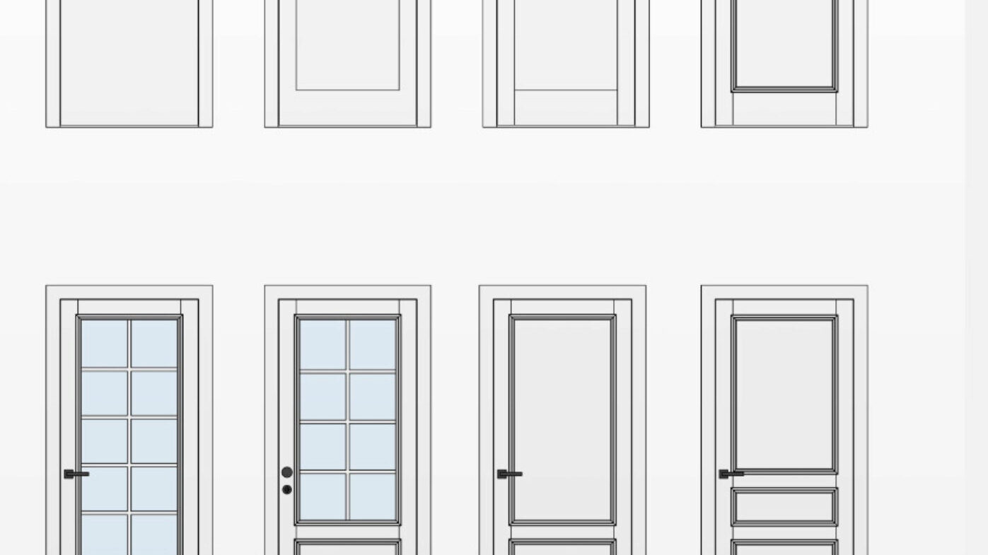 Уникальная система отделки откосов и возможность настраивать дополнительное остекление вокруг двери делают этот набор семейств уникальным.