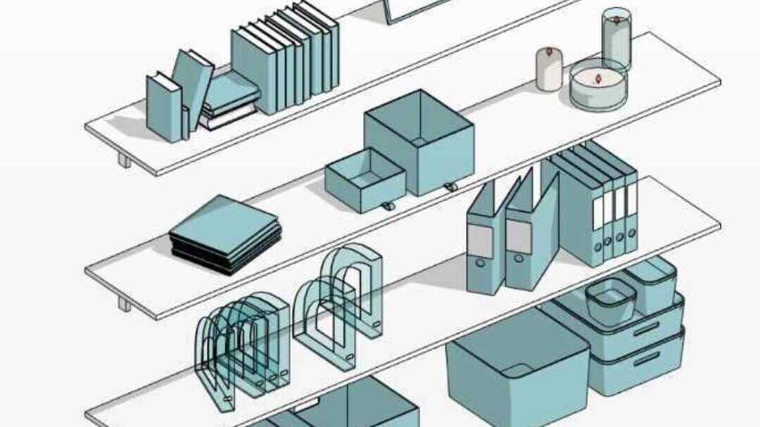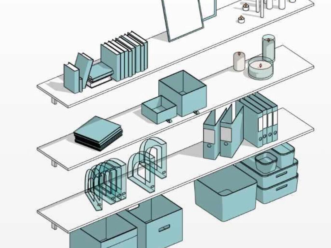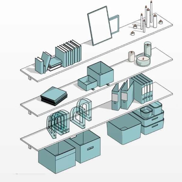 В состав набора входят: Универсальный стеллаж, Стеллажи IKEA, Стеллаж зигзаг, Полка, Набор семейств декора для хранения