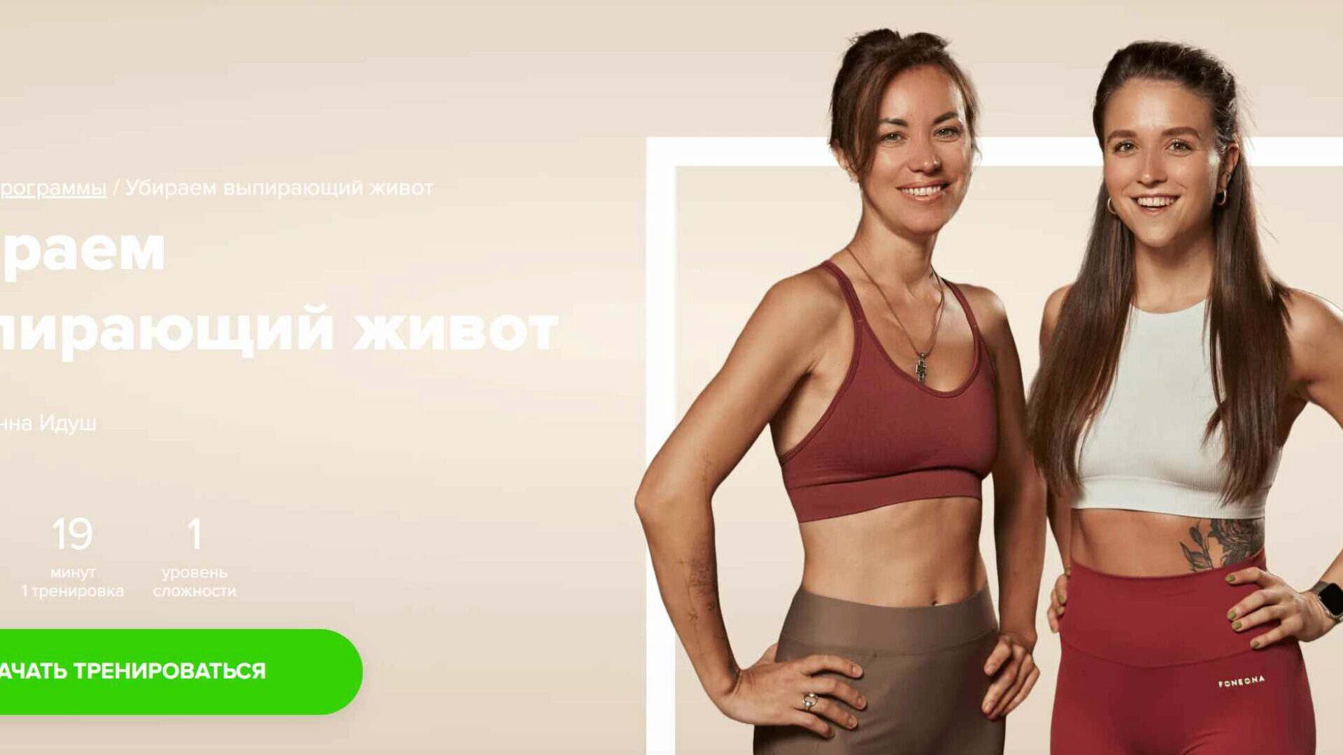 Встречайте программу от Иванны Идуш и топового блогера Юлии Кемпель. В ходе тренировок вы поработаете над всеми проблемами, связанными с выпирающим животом. Начиная от нарушения осанки и проблем с дыханием, и заканчивая слабыми мышцами живота и плохой подвижностью тазобедренных суставов.