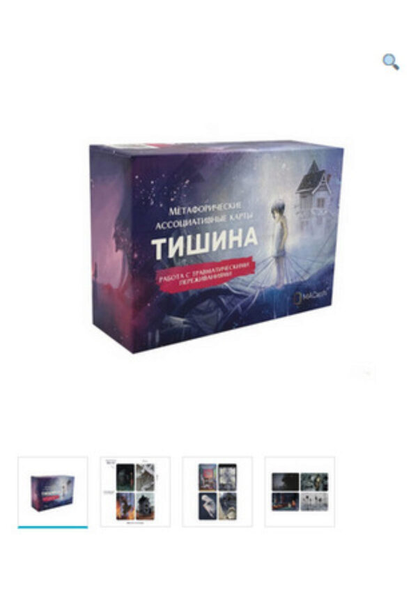Метафорически карты «Тишина» предназначены для работы с негативными переживаниями любого рода. Набор состоит из 100 изображений, подчас тяжелых и неприятных, которые помогут погрузиться в глубины подавленного и травматического переживания.