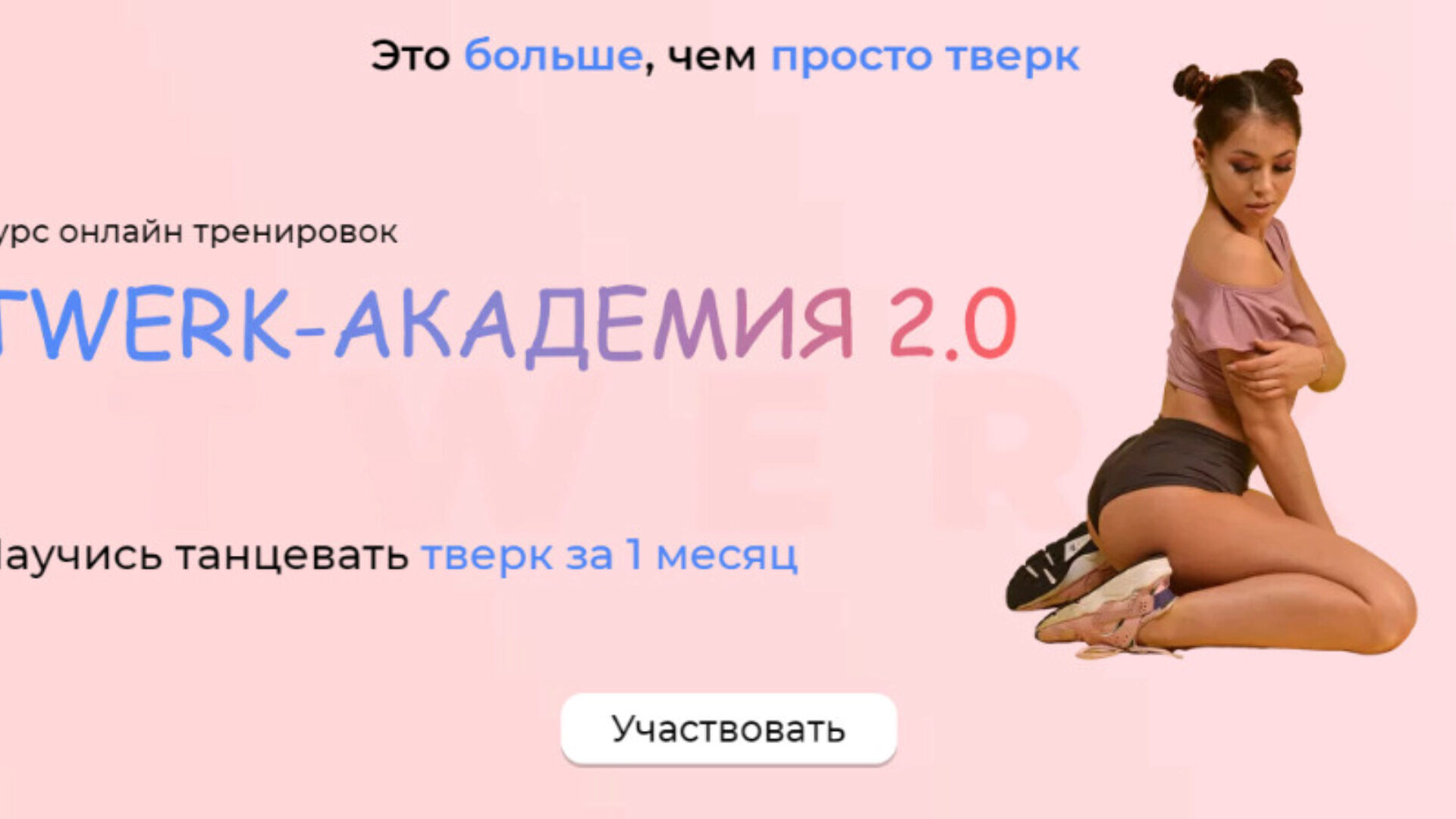 Двухнедельный экспресс-курс по тверку с нуля Содержание курса: Знакомство с Twerk Базовый шейк Шейк на прямых ногах Шейк баскетбольный мяч+радуга Шейк в плие Кардио-тверк (3 мини-комплекса) Урок на женственнос - урок для проработки спины по развитию