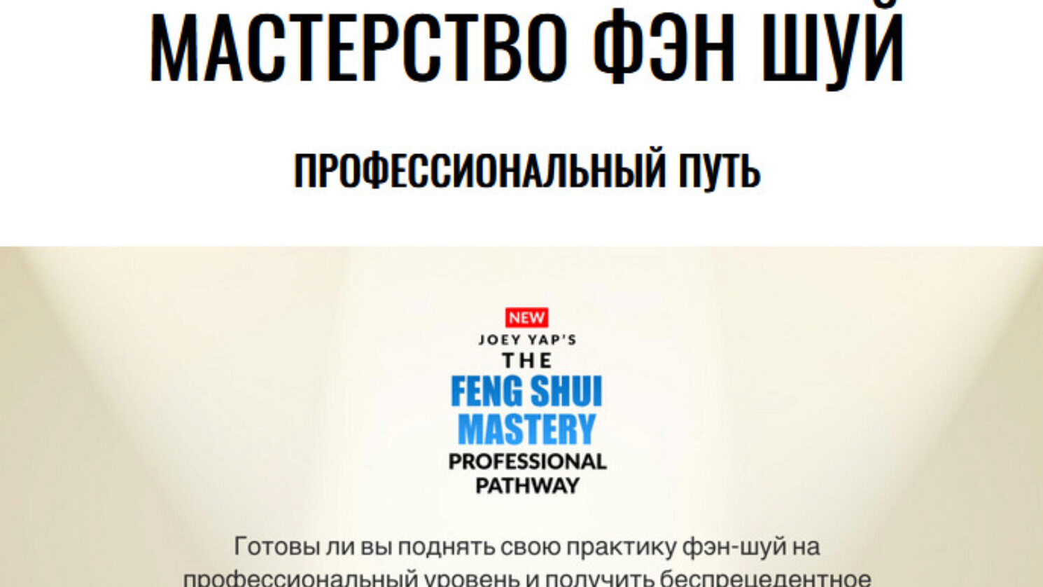 Feng Shui Mastery 2024 Мастерство Фэн Шуй: профессиональный путь Самая престижная ступень в обучении по программе Фэн Шуй Joey Yap «Водный Дракон Сань Хэ» является частью большой программы «Мастерство Фэн Шуй: профессиональный путь». Третий курс - мастер-класс по Сань Хэ. Посвящен формулам Водного