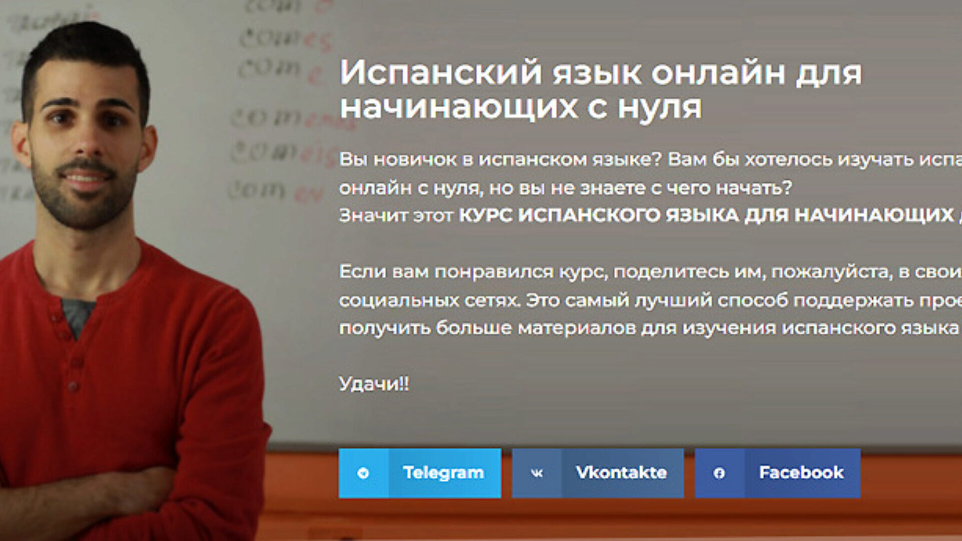 Чтобы эта печальная ситуация не случилась у вас, я создал этот курс, где все материалы структурированы от А до Я. Я лично буду вашим преподавателем, и вы будете учить испанский весело и эффективно.