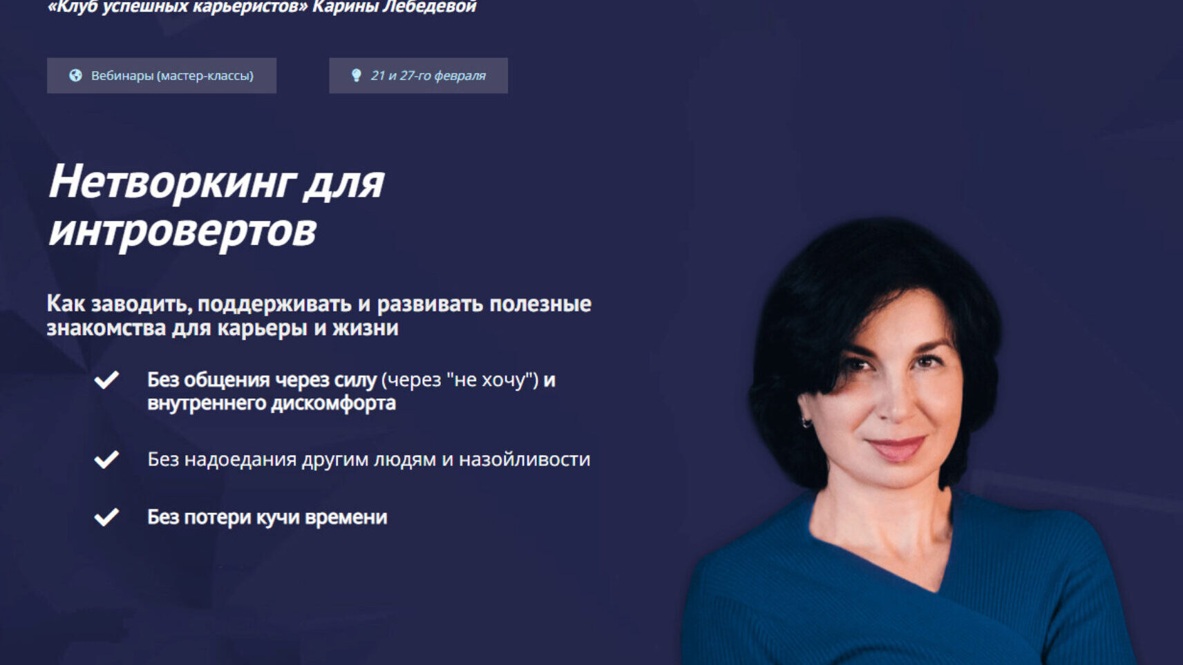 Карина Лебедева Нетворкинг для интровертов. Тариф «Вебиннар 1 и 2» — Клуб успешных карьеристов