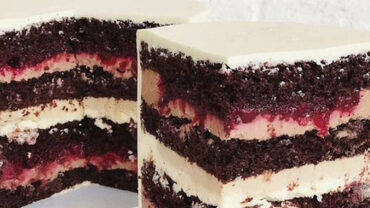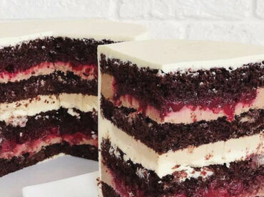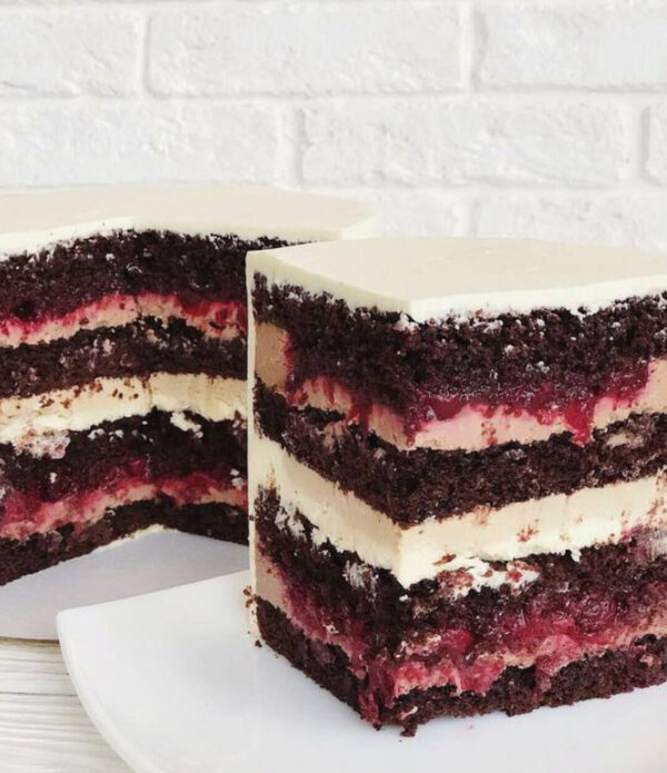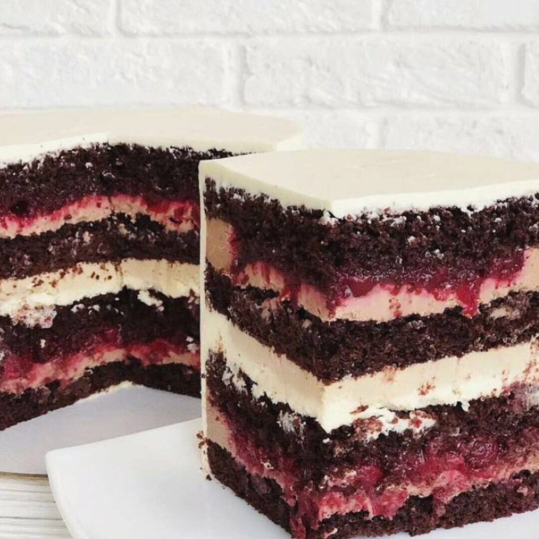 Вы получите техкарту: Бисквит Пропитка Крем маскарпоне Шоколадный крем в начинку Вишневый конфитюр Шоколадный крем-чиз на покрытие.
