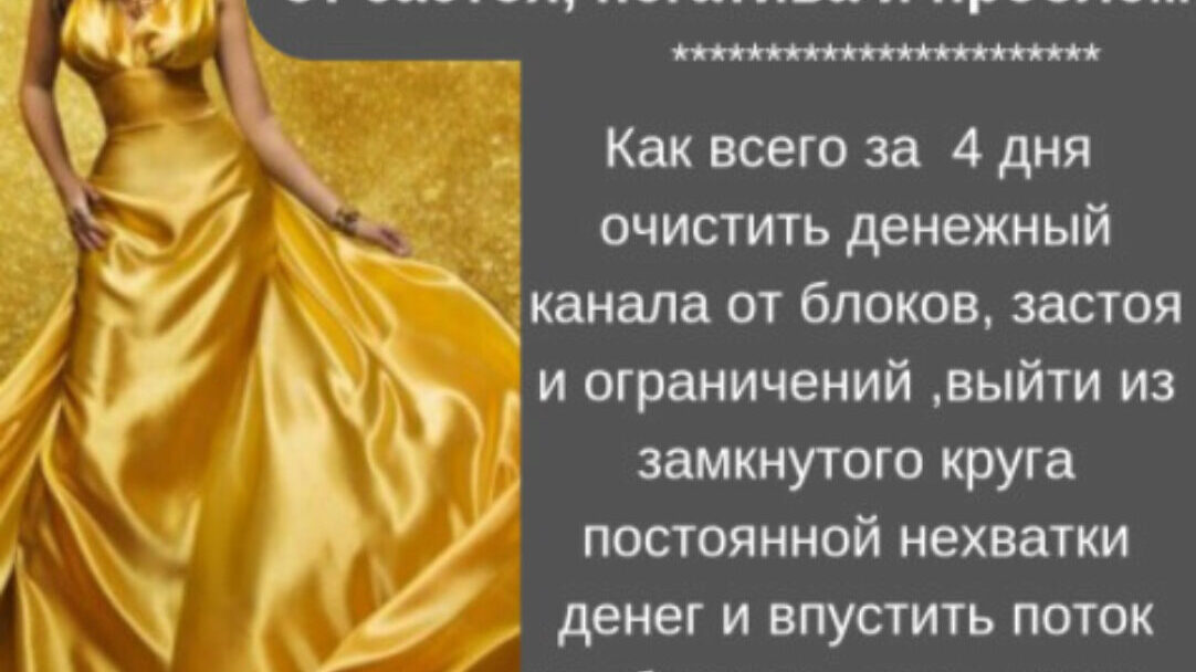 Видео из платной подписки от 45$. Мощный ритуал для уничтожения любых проблем, которые возникли в вашем денежном канале и перекрыли денежный поток, с вашими деньгами в целом. Если у вас есть денежный провал, денег регулярно не хватает, кошелек постоянно пустеет, деньги не задерживаются, утекают