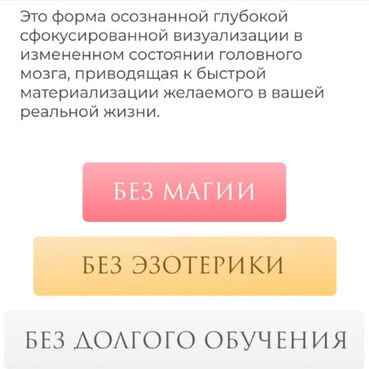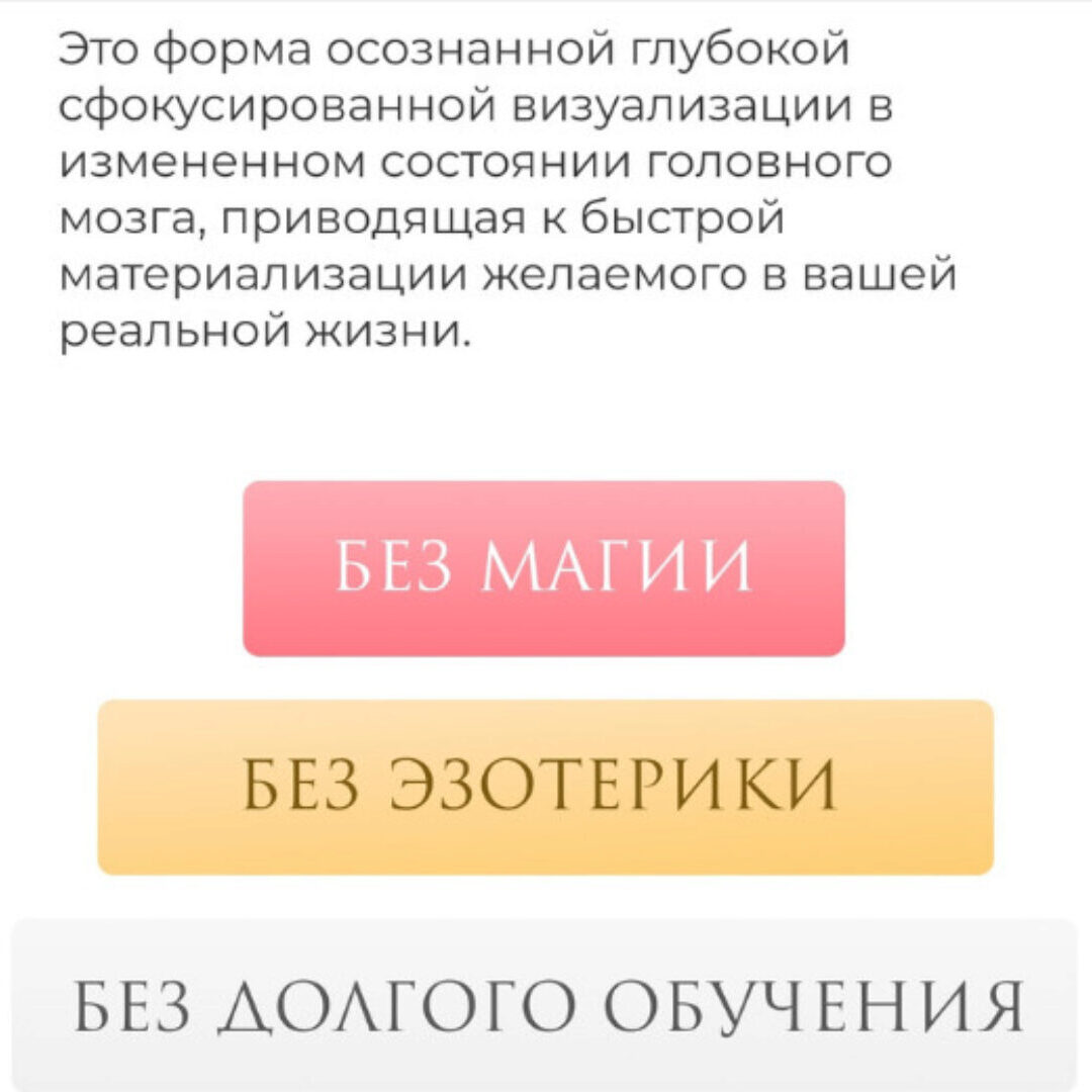 Что Вам даст каждая из 3-х медитаций: «Генерация Идей» Подарит вам море инсайтов и возможностей Приведет в вашу жизнь нужных людей Вернет вам вкус к жизни Вы начнете раньше вставать БЕЗ будильника Мечты станут сбываться в несколько раз быстрее Вы будете заряжены энергией 24/7 Усилит интуицию!