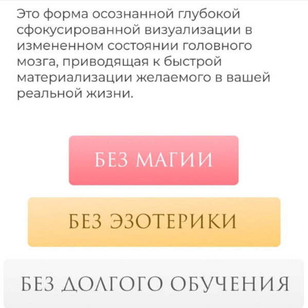 Все нейро-манифестации и разборы расположены в порядке и в соответствии с лунными днями для усиления эффекта и результативности. Человеческая психика подчиняется лунным ритмам, и мы используем это себе на пользу.