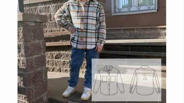 Выкройка детской рубашки оверсайз, размеры 92-122 в одном файле и без припусков на швы. Тренд этого года это конечно рубашка, ее носят на футболку на худи, как верхний слой одежды. И с джинсами и с спортивными штанами. Материал: Облегчённый Джинс, рубашечные твид, вельвет, фланель и подобные