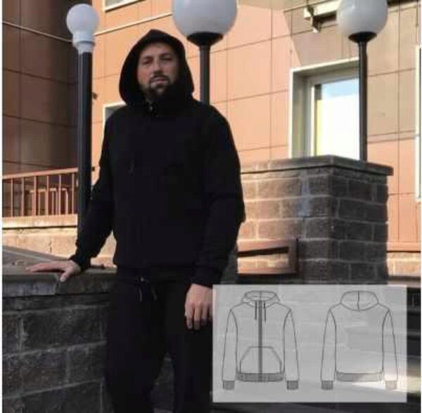 Выкройка мужской толстовки. Выкройка в формате pdf. Размеры выкройки - от 46 до 58 на рост 170-176. Мужская толстовка на молнии, среднего объема, прямого силуэта. На переде оформлены вертикальные карманы-листочки. Рукав рубашечный, плечо немного спущено. Низ обработан притачным поясом. Горловина