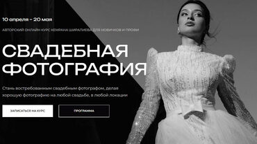 Повышаем качество портфолио, ставим новые цели Бонусы: Макет готовой фотокниги Шпаргалки позирования Слайд-шоу как изюминка вашей работы Программа курса: Создаём себе блестящий имидж Снимаем сборы невесты – портрет и репортаж Привлекаем первых заказчиков Снимаем утро жениха – пошаговые инструкции