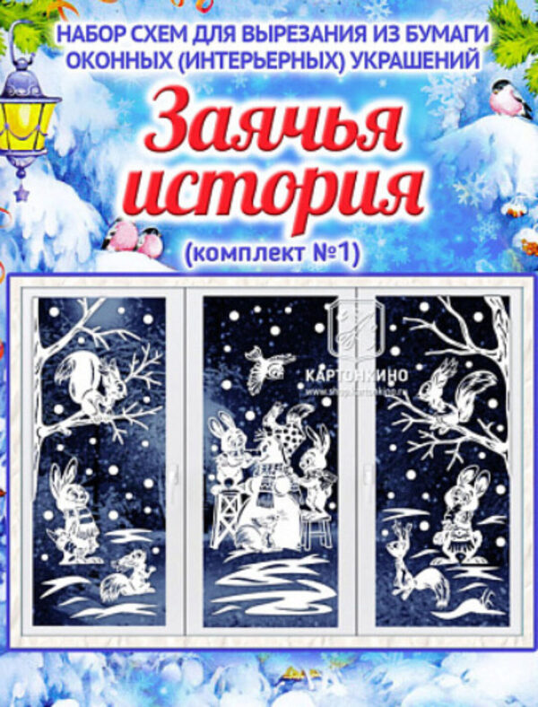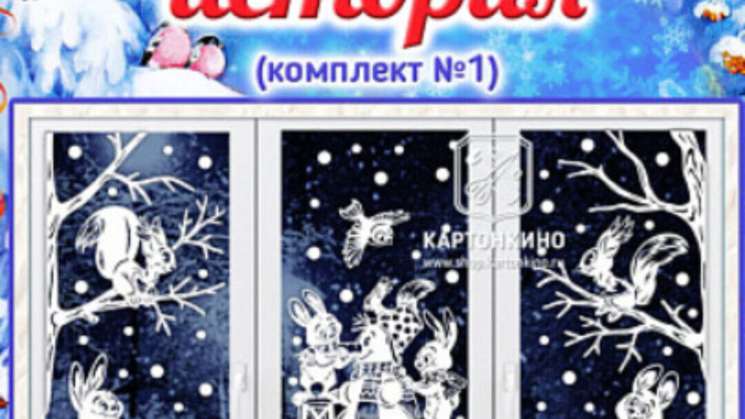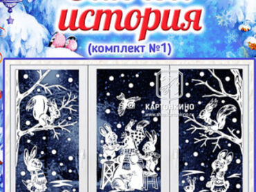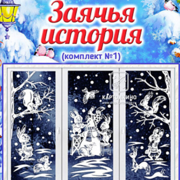 Для украшения нескольких окон или больших многосекционных окон в едином стиле и единой тематике можно использовать все комплекты серии «Заячья история».