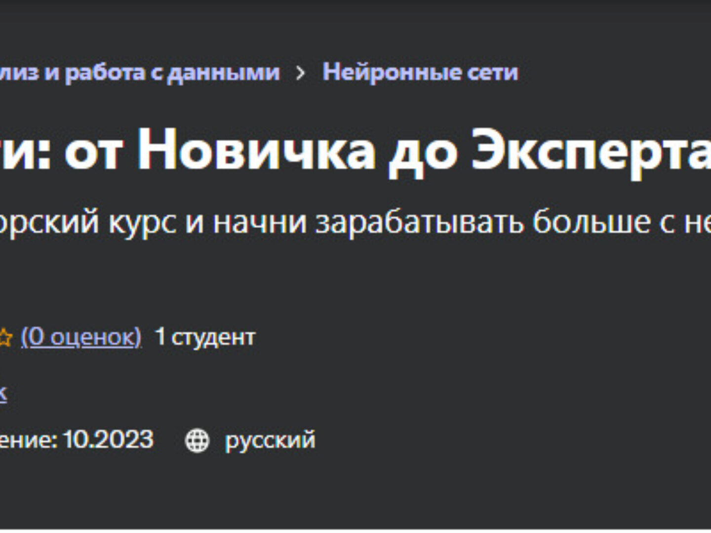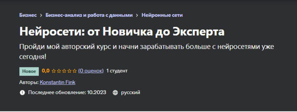 Konstantin Fink, Константин Финк «Нейросети: от Новичка до Эксперта» — Udemy