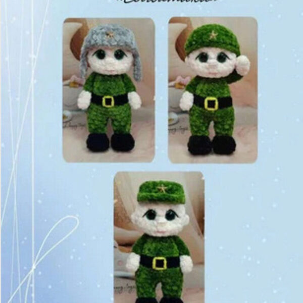 Подробное описание солдатика и 3 видов головных уборов (каска, кепка, ушанка).