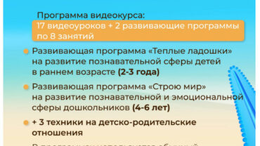 Программа видеокурса: 17 видеоуроков + 2 развивающие программы по 8 занятий: