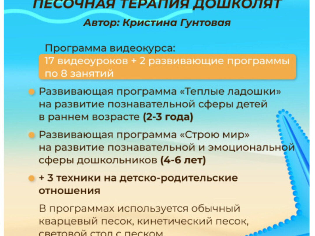 Элементы сказкотерапии, дидактические пособия, возможность использовать ЛЮБОЙ ПЕСОК, который у вас есть!