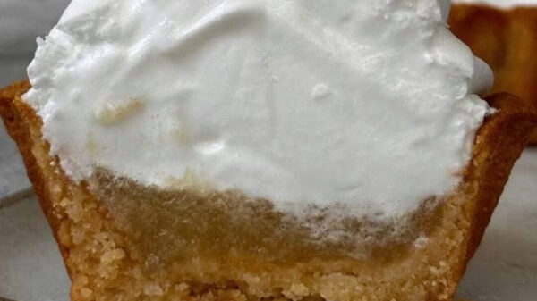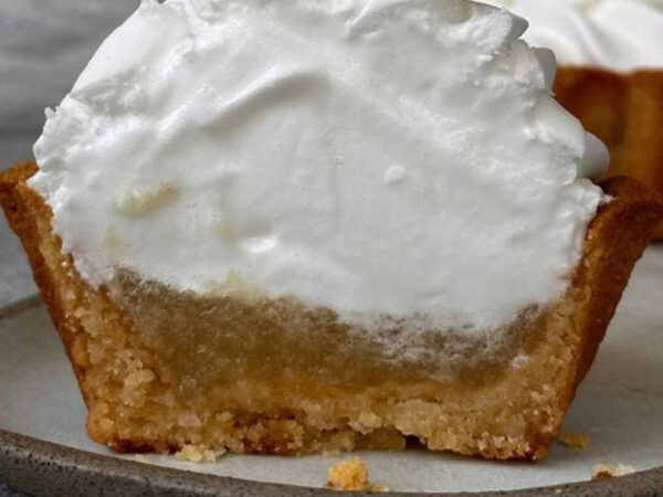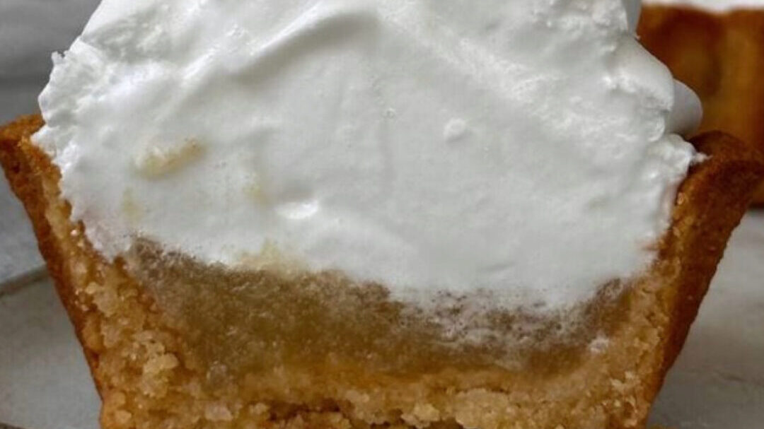 хрустящая песочная основа, яблочная начинка и шапочка меренги без сахара.