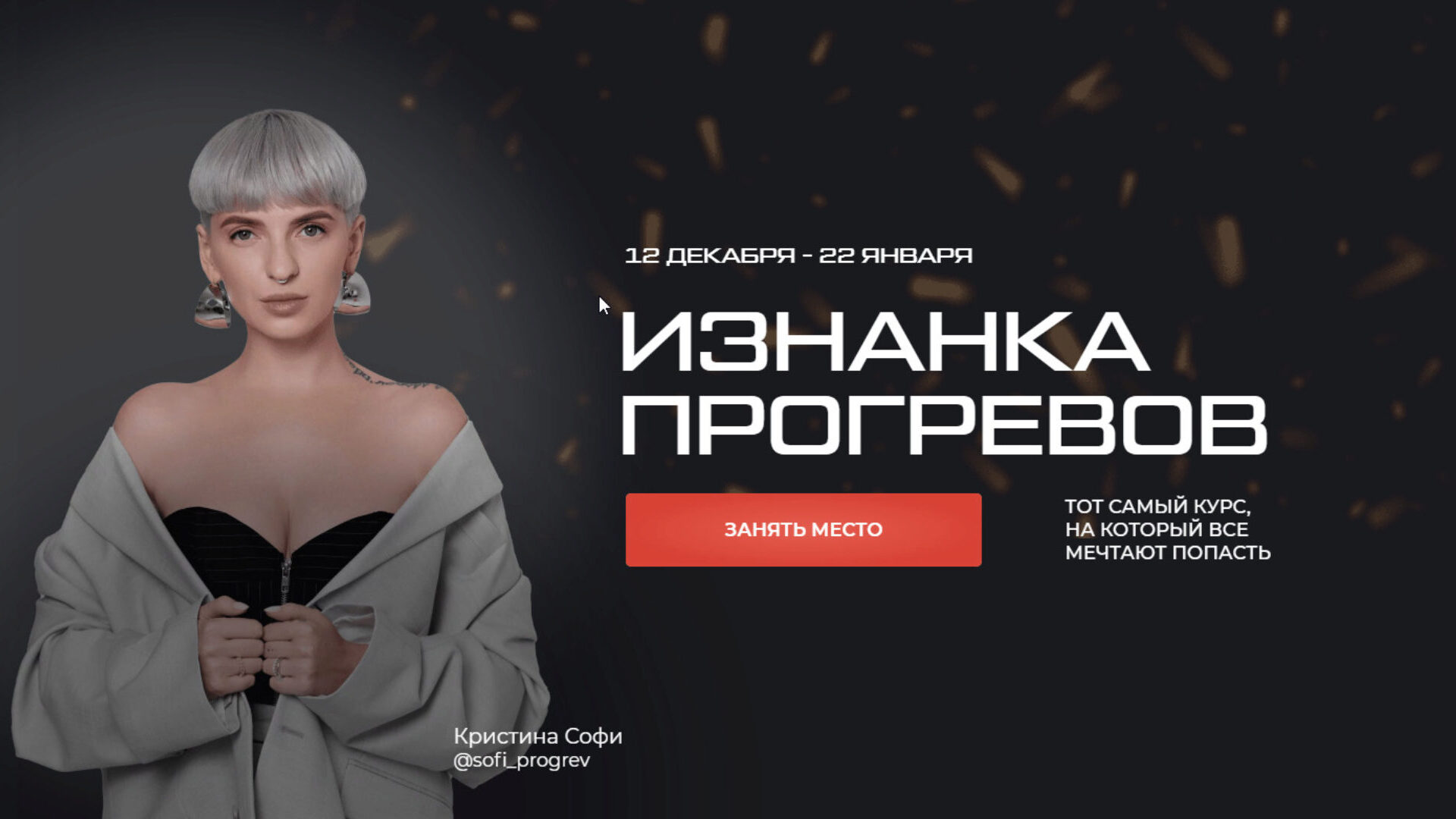 Старт: 23 января 2023. Интенсив длится 7 дней Тариф эксклюзив Пошаговый план выхода на 100.000 подписчиков ТОП - 5 бесплатных способов продвижения блога, которые точно сработают Виральная система: как создавать контент, который все хотят репостить История игры на 15.000 участников за 24 часа