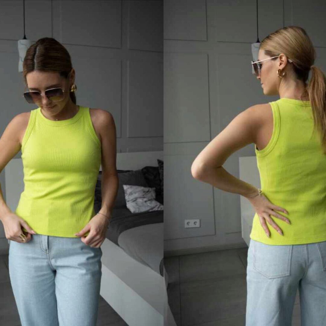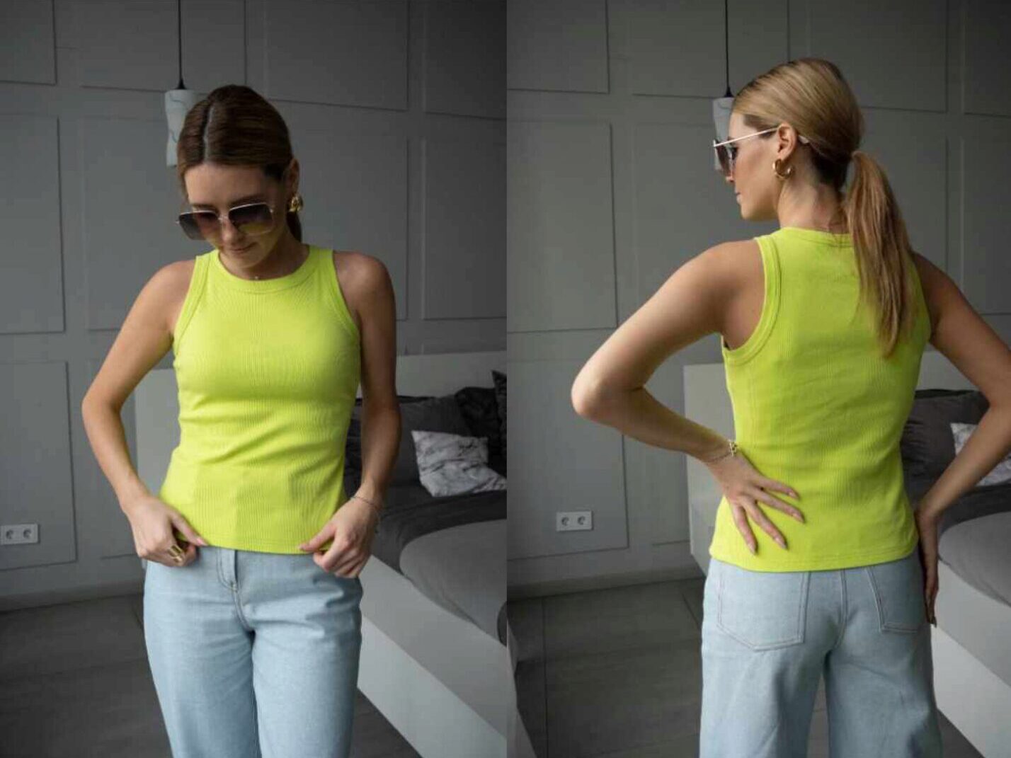 Выкройка майки-топа малого объёма, плотно прилегающего силуэта из трикотажного материала. Топ с классическим круглым вырезом горловины, широкими проймами на бретелях. Горловина проймы изделия обработаны обтачкой. Длина основного изделия выше линии бёдер. Для данной модели подойдут мягкие