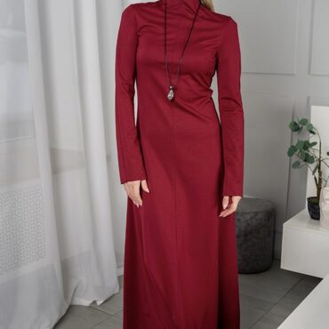 Длина платья до линии щиколоток. Срезы платья обработаны ролевым швом.