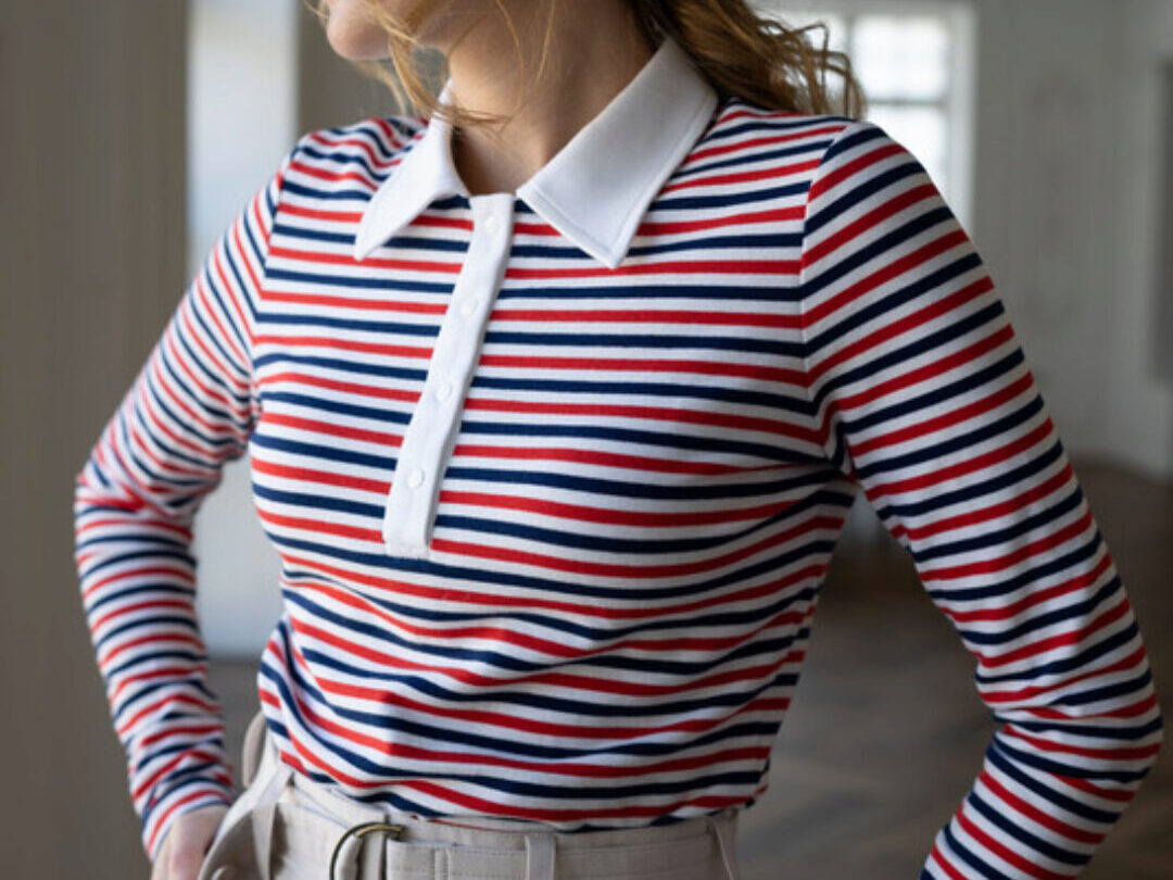 Выкройка футболки поло умеренного объема, приталенного силуэта.