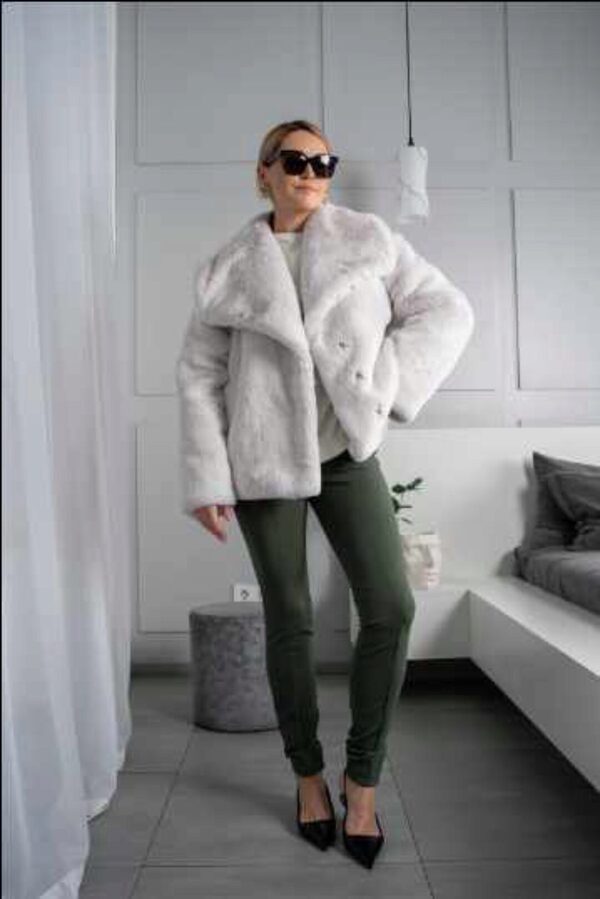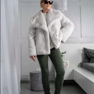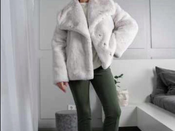 Выкройка шубы большого объема (оверсайз), прямого силуэта. На полочке изделия прорезные карманы. У шубы спущена линия плеча, придающая мягкую линию плечевому поясу.