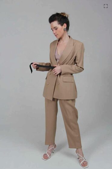 На фото Жакет выполнен из костюмной ткани, по составу это 100% шерсти