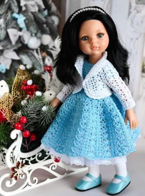 PDF-журнал по вязанию крючком наряда «Лиза» для кукол типа Paola Reina 34см Модель разработана для паолочек на новом типе тела. На телах предыдущих выпусков платье сидит чуть свободнее. ► Подробное текстовое описание вязания каждого ряда палатья и шляпки (с цветным узором) ► Фотографии этапов