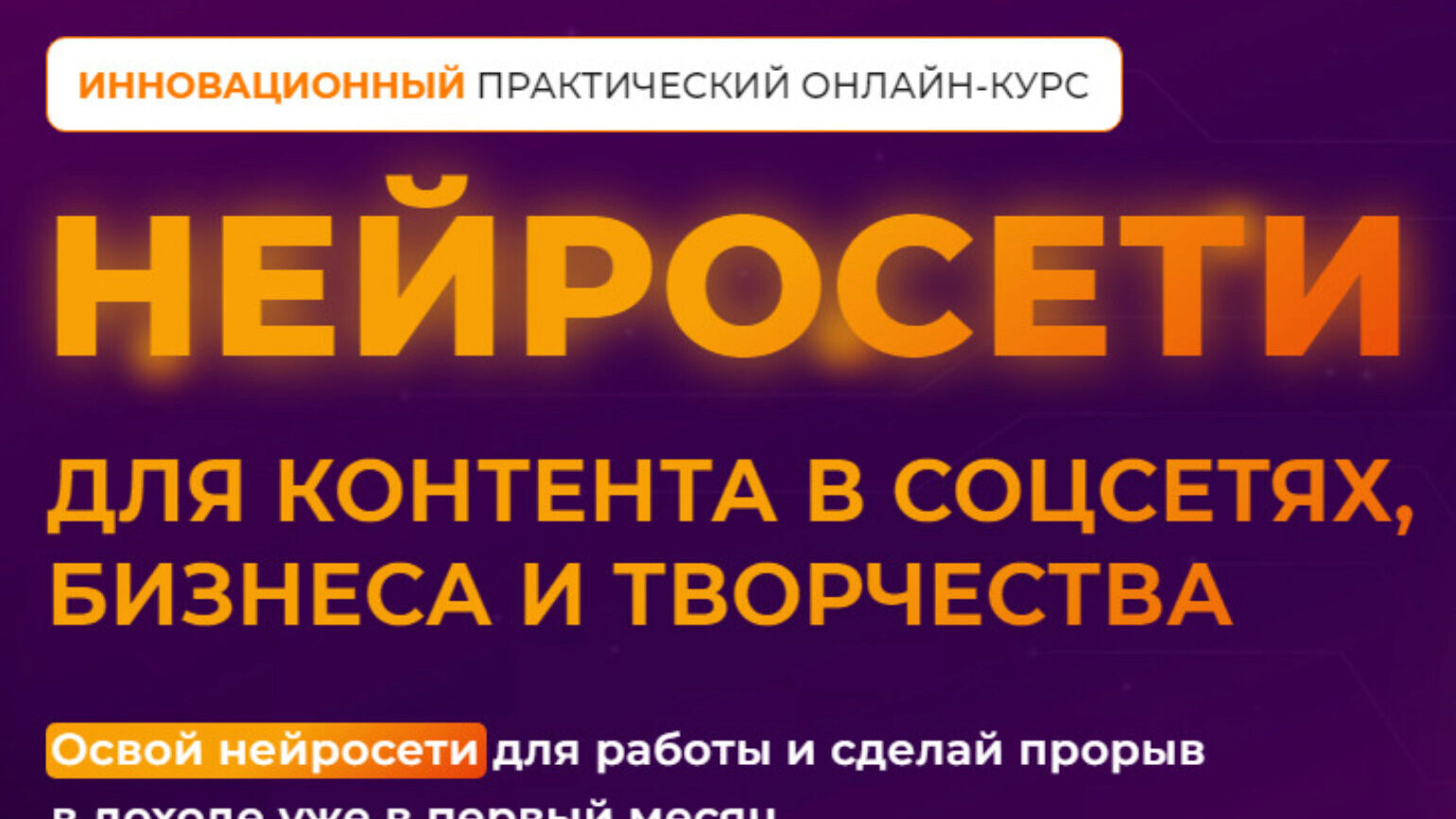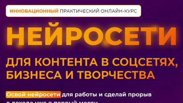 Нейросети для создания контента и бизнеса : полное обучение -Посты с помощью нейросетей за 5 секунд -Контент-план постов для сториз и постов на месяц -Правильная задача нейросетям -Исследование целевой аудитории с помощью нейросети -Продающие тексты, тексты для рекламной подачи -Идеи по