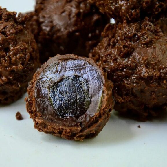 Трюфели 1.0 карамель с солью клубника с шампанским кофе с айриш крим черная смородина с ликером зелёный чай, имбирь, лимон мята и лайм фундук маракуйя и карамель кокос с лаймом апельсин с чаем эрл грей Трюфели 2.0: клюква, апельсин и корица земляника с грейпфрутом рождественское печенье дыня с