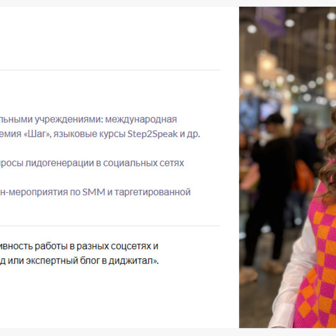 Этот курс для тебя, если ты: – начинающий маркетолог, который хочет стабильно и хорошо зарабатывать – предприниматель, планирующий масштабировать свой бизнес и увеличить прибыль – специалист, имеющий смежную профессию, который ищет новые источники заработка – эксперт, который пытается