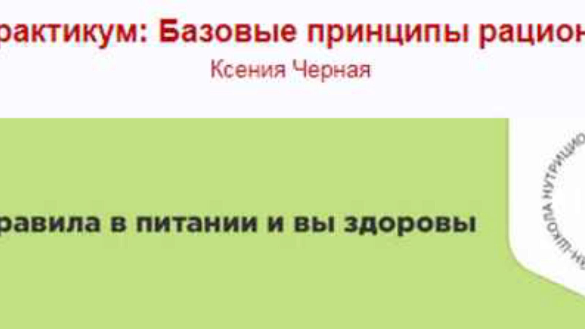 Отзывы о курсе «Практикум: Базовые принципы рациона» от Ксении Черной