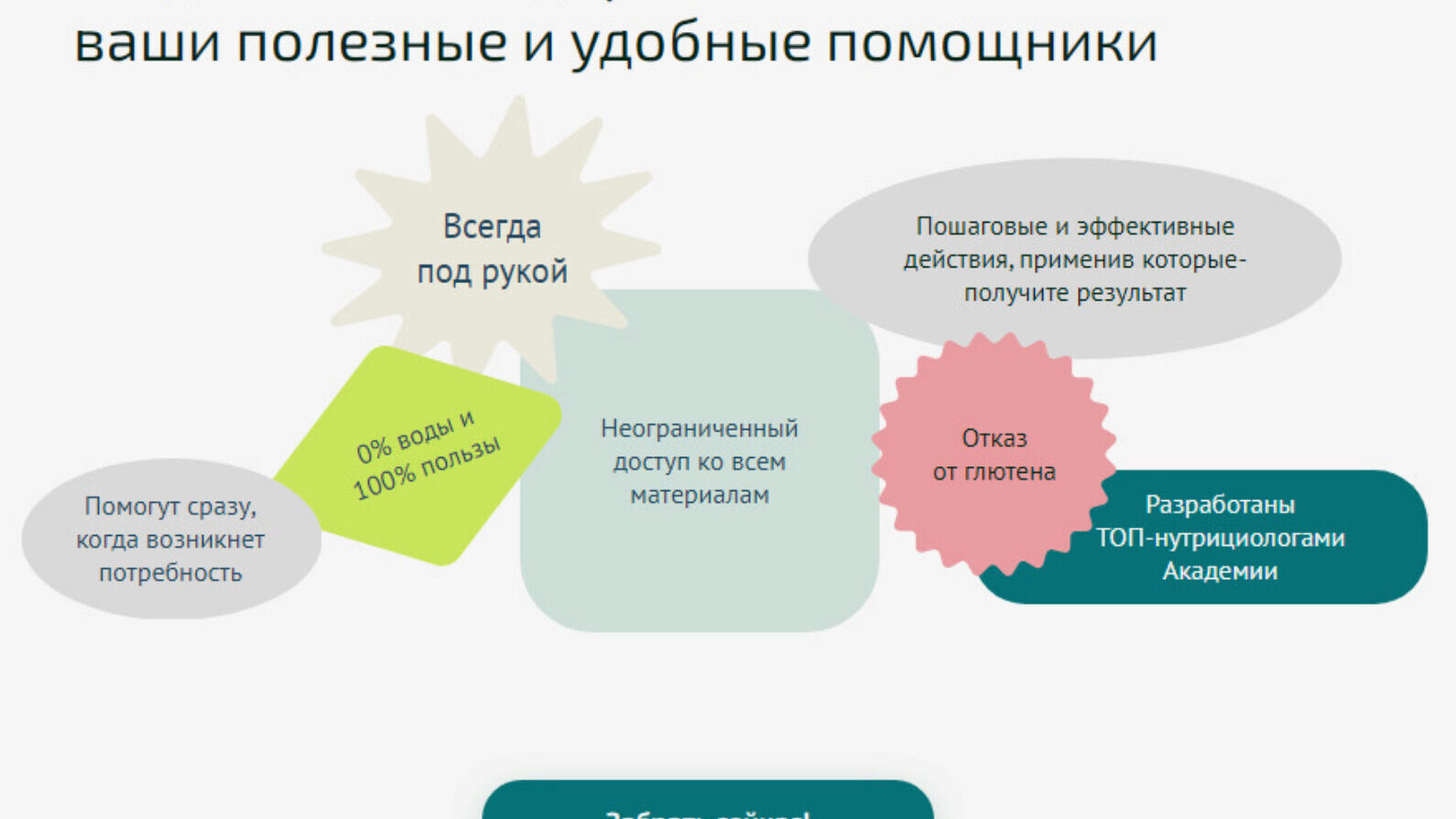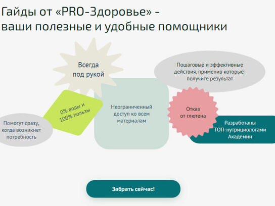 Серия гайдов от топовых нутрициологов Академии 19 гайдов на все случаи жизни! Выберите то, что актуально для вас или заберите все! Подручные помощники на все случаи жизни:здоровье, быт, питание и безопасность! Справочник Минералы Отказ от глютена Инсулинорезистентность Вирусная нагрузка