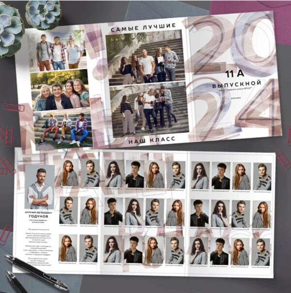 Универсальный дизайн для первого класса, детского сада, начальной школы В шаблон входят: в шаблон входит Psd-файл с надписями для детского сада и начальной школы 2 варианта обложки — общая и с портретом 5 разворотов, включая виньетку и индивидуальный на первом развороте мальчика/девочку