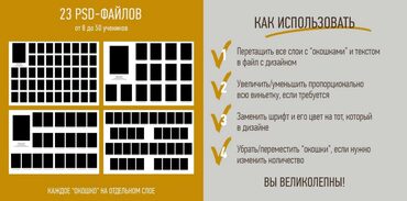 - всё — в слоях, каждое «окошко» на отдельном слое