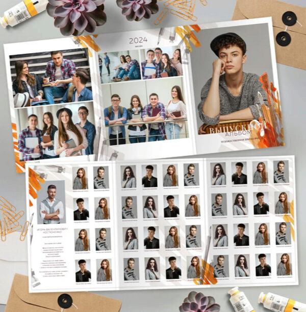 - 7 разворотов - включая варианты для альбома общей верстки и разворота с учителями